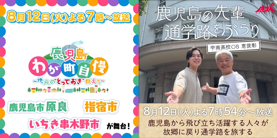 鹿児島わが町自慢~地元の“とっておき”教えて~②19:54~21:00「鹿児島の先輩 通学路をぶらり~甲南高校OB 恵俊彰~」