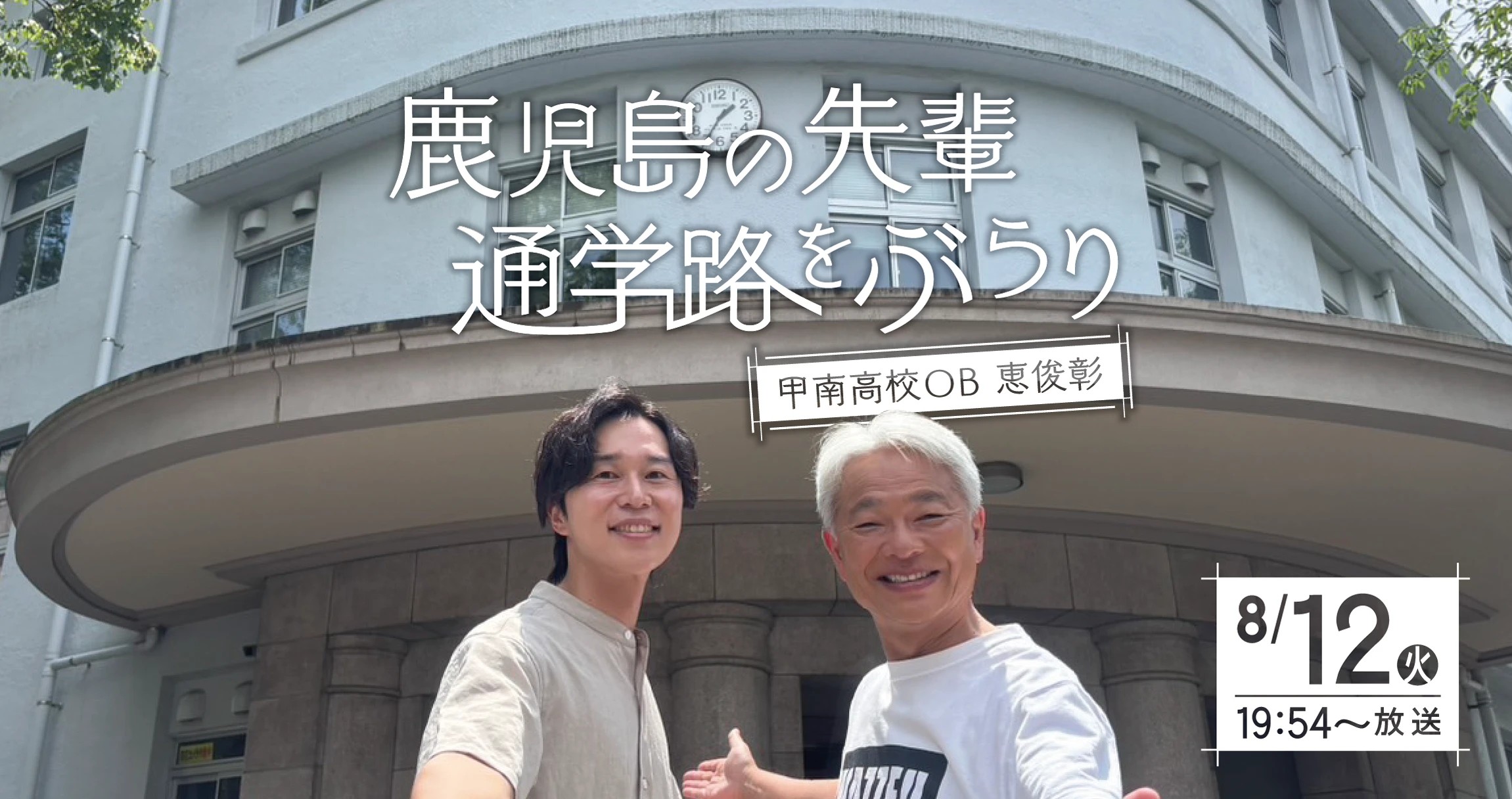 鹿児島から飛び立ち活躍する人々が、故郷に戻り通学路を旅する「鹿児島の先輩 通学路をぶらり」。 今回の先輩は日本の“昼の顔”として人気を集めるタレントの恵俊彰さん。鹿児島を離れて42年。実家のあった鹿児島市荒田から母校・甲南高校までの通学路を旅する。生まれ育った町でのさまざまな出会いが、あの頃を思い起こさせてくれる。