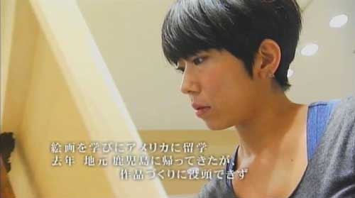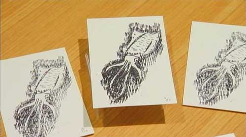 イカの絵だけを描き続けるイカ画家の宮内祐賀さん。