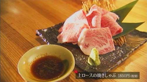 焼肉よりもうすく、でもしゃぶしゃぶよりは厚い上ロースの焼きしゃぶもオススメ。