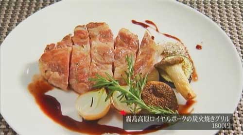 霧島高原ロイヤルポークの炭火焼きグリル(1800円)は、素材を生かしたお肉そのままの味を堪能できます。