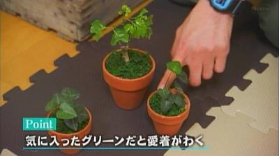 るいちゃんが選んだのはアイビー。これをフェイクのグリーンが置いてあったところに置いてみる。ちょっとした変化にも気付くようにグリーンは目にとまるところへ。