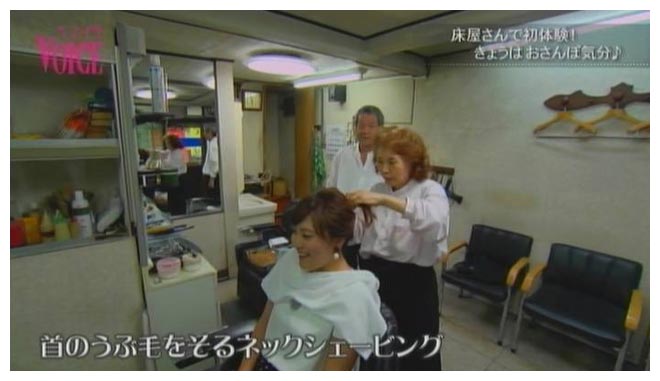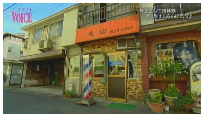 地元に愛される理容店。いまでもラブラブの是枝さん夫婦が営むお店です。首のうぶ毛を剃るネックシェービングがこのあたりのお母さんたちに大人気です。