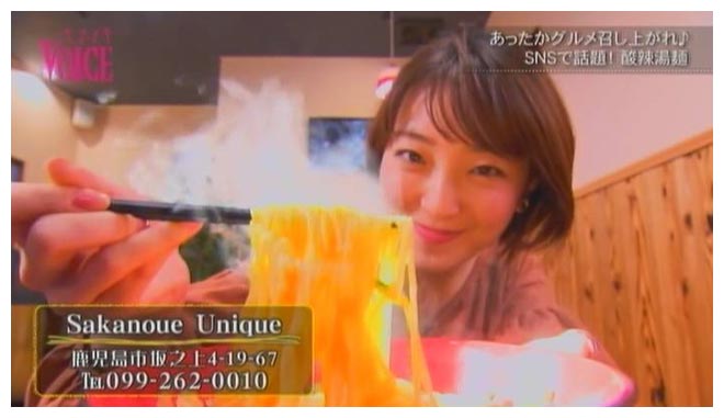 SNSを賑わす話題のラーメン屋。店内にはアート作品が飾られていてギャラリーのような雰囲気です。ラーメンも思わず写真に撮りたくなるような斬新なものばかり!酸辣湯麺は、酸っぱくてピリ辛なラーメン。薩摩赤鶏100%のスープに、トッピングは豆腐と野菜などを炒めた具材。ラー油と酢がアクセントになっています。しっかりかき混ぜて、麺と餡を絡ませて頂きます。