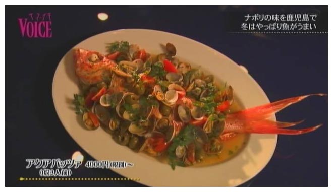去年11月騎射場にオープンしたばかりの『ブルームーン』は、イタリアンがメインの創作料理のお店。シェフの鹿野さんは脱サラしてイタリアンの道へ進みました。去年鹿児島に観光に来たことがきっかけでこの土地が気に入り、移住を決めたそうです。魚が主役になることが多いイタリアン。ブルームーンのおすすめは魚を煮込んだナポリ料理、『アクアパッツァ』。その日の朝に仕入れたばかりのオナガダイを一匹まるごと使った贅沢な一品です。魚介の旨味とトマトとオリーブの酸味が凝縮されています。