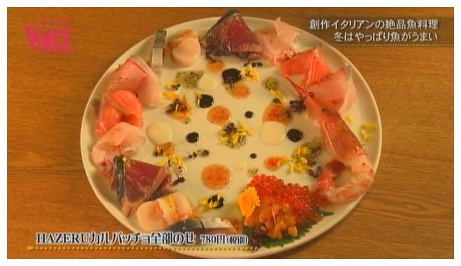 本黒マグロのレアカツレツ 1280円(税別) HAZERUカルパッチョ全部のせ 780円(税別)