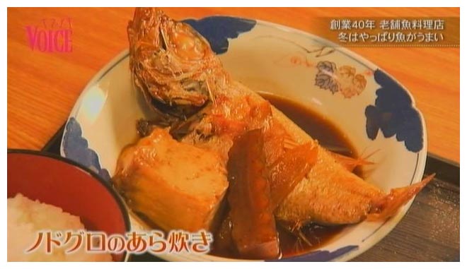 天文館の『さかなちゃん』は店を構えて40年。カウンターの真ん中の大きないけすには伊勢エビにヒラメ、イシガキダイなど、いつでも獲れたて新鮮な魚が泳いでいます。とにかく天然モノにこだわるさかなちゃんは県内各地にトラックを走らせ、旬の魚を仕入れます。お店は家族で切り盛り。お父さんの小さい頃からの夢だった「魚のおいしいお店」を家族みんなでもり立てています。その日のおいしい魚をいちばんおいしい調理法で楽しめるのが、一番人気の『日替わりランチ』。この日のメインのノドグロまるごと一匹のあら炊きに、刺身、小鉢、魚の骨から出汁をとったお味噌汁。このボリュームで760円は安い!あま~く煮たあら炊きはごはんが進みます。活きの良さを堪能したいなら『刺身御膳』もおすすめ。