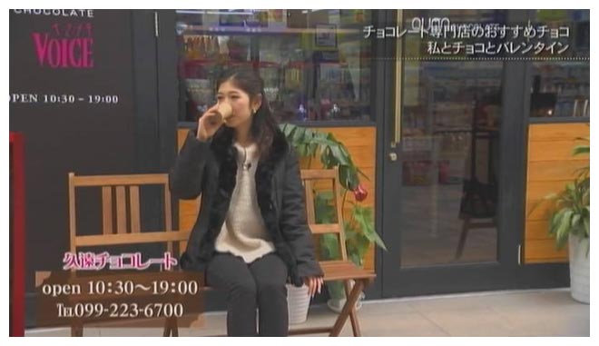 天文館にある『久遠チョコレート』は、全国でも話題になっているチョコレート専門店。鹿児島には一昨年オープンしました。障害を持っている方々が社会でかっこよく働けるように全国でも展開しているお店です。素材、作り方、作り手の「3つのピュア」を大切にしているという久遠のチョコレートは、ベトナムやコロンビアなどアイテムによってカカオの生産国をセレクト。そのこだわりの素材を使ってひとつひとつ丁寧に、じっくり時間をかけてチョコレートを作ります。オープンから人気なのが、なめらかなチョコレートにナッツやドライフルーツをあわせた『久遠テリーヌ』。お茶や桜島小みかんなど鹿児島の特産品をつかったものもあるので、県外からの観光客にはお土産としても人気なんだとか。寒い時期にうれしい、ホットのチョコレートドリンク『ホットショコラショー』は、使うカカオは週代わりなので濃厚だったり甘みを感じたりと違いを楽しめるのもポイント。