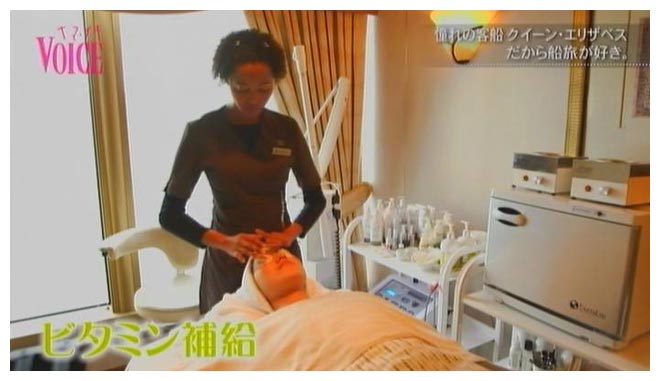 美容に力を入れてきたキュナードが提案する、最新の美容法を取り入れた本格的なスパ。ボディ、フェイシャルなどお好みのコースが選べます。美川アナウンサーが選んだのはビタミンを補給してくれるというコース。船の上ってことを忘れちゃう癒やしの時間です。