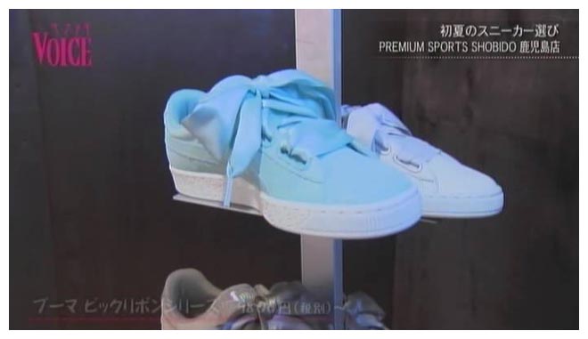 2Fプーマのフロアで、かわいらしいスニーカーを見つけました。今人気絶頂のビックリボンタイプ。今年は11種類のラインナップが登場しています。女性を意識してデザインも考えられていますので今からだとショートパンツとの組み合わせも楽しめると思います。