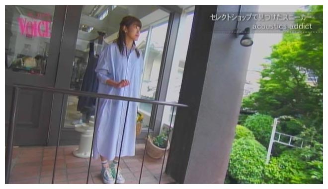 こちらのセレクトショップでも見つけました♪パット目をひく3色のパステルカラーのコンバースです。コンバースアディクトといって履く人誰もがこのスニーカーの虜になると言われている、究極のシリーズなんだそうです。機能性から、素材、デザイン性にも優れているとファッション界でも、注目のスニーカーなんだとか。そんなおしゃれなスニーカーには、シンプルなストライプのシャツワンピースをさらりと。おしゃれ感をぐっとアップさせてくれるスニーカーです。