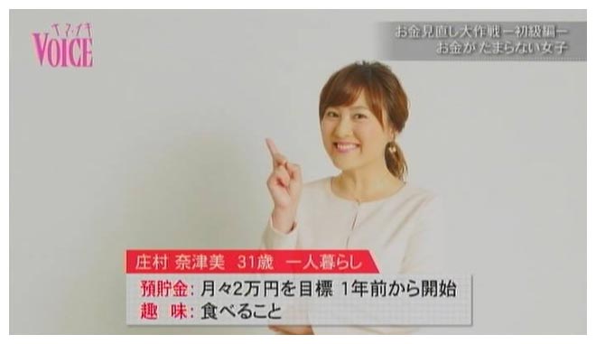 庄村奈津美 31歳 一人暮らし 月々2万円を目標に1年前から貯金を開始