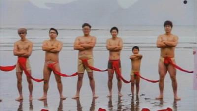 「これはふんどしです。吹上浜47キロですね、4万7千人で1本の赤いふんどしでつながるっていうプロジェクト。」