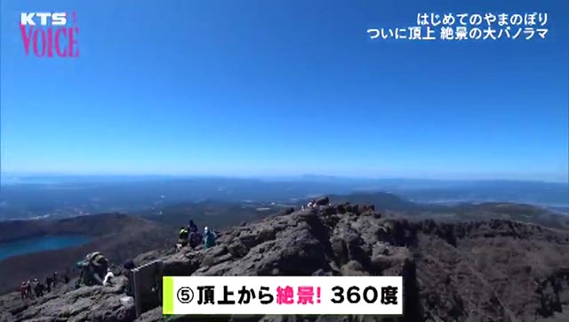 宮崎県まで360度の大パノラマ!高千穂峰、新燃岳、眼下には大浪池。遠くに見えるのは錦江湾に浮かぶ桜島、そしてこの日は運よく開聞岳まで見ることができました。