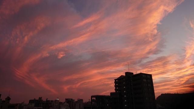 渦状の雲に夕焼けが映えて、とても綺麗でした。
