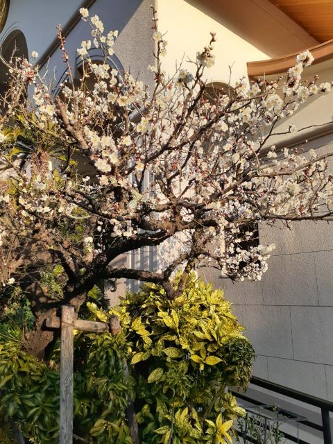 日置市伊集院町の光寿寺に梅の花が咲きました。