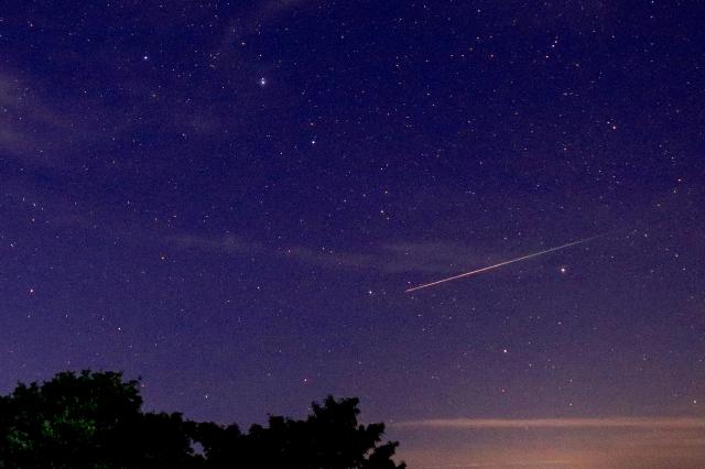 ペルセウス座流星群の撮影に挑戦。撮影場所に到着してカメラの準備をしているときに巨大な流星が流れた。ワクワクしながら急いで準備して撮影に入ったとたん、なかなか流星が現れない。ヤキモキしながら待つこと1時間ほど。やっと1個の流星を撮影できた。小さな流星だったけど北斗七星とのコラボ撮影ができてラッキーだった。
